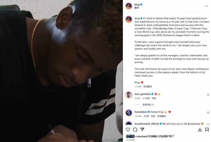 8月16日最新消息,法国边锋科曼在社交媒体上向拜仁慕尼黑道别,结束长达十年的效力生涯,即将转会沙特球队利雅得胜利。